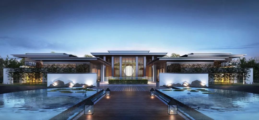 建筑形式上采用新亚洲风格,将古典与现代相融合,营造传统与现代相结合的精神内涵与城市形象,符合现代人对轻奢主义的审美要求。注重细节部位的设计,通过立面构件的穿插,材质的对比,营造端庄、优雅的建筑形象。