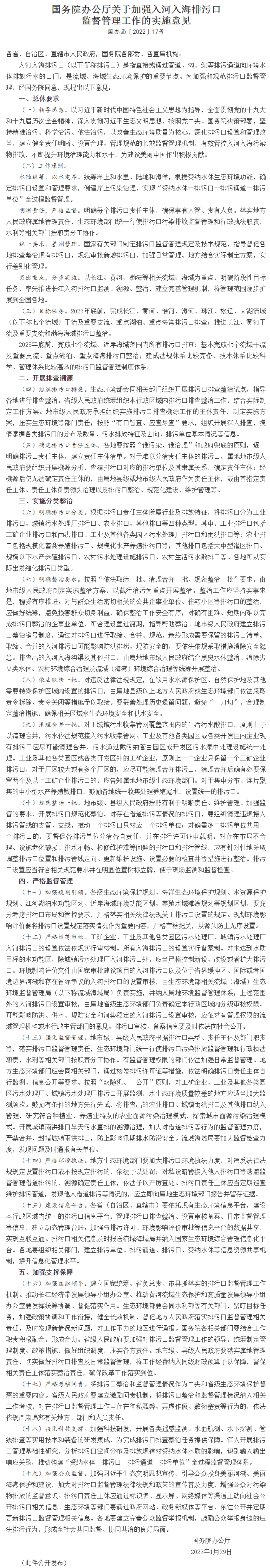 前段时间,国务院办公厅发布了国务院办公厅关于加强入河入海排污口监督管理工作的实施意见(国办函〔2022〕17号)。