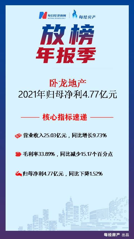 4月12日晚间,卧龙地产(600173.SH)公布2021年度业绩报告。