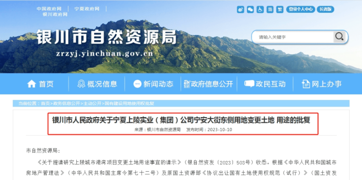 《关于提请研究上陵城市港湾项目变更土地用途事宜的请示》(银自然资发〔2023〕503号)收悉。根据《中华人民共和国城市房地产管理法》(中华人民共和国主席令第七十二号)及原国土资源部《协议出让国有土地使用权规范(试行)》(国土资发〔2006〕第114号)精神,经市人民政府专题会议研究,现批复如下: