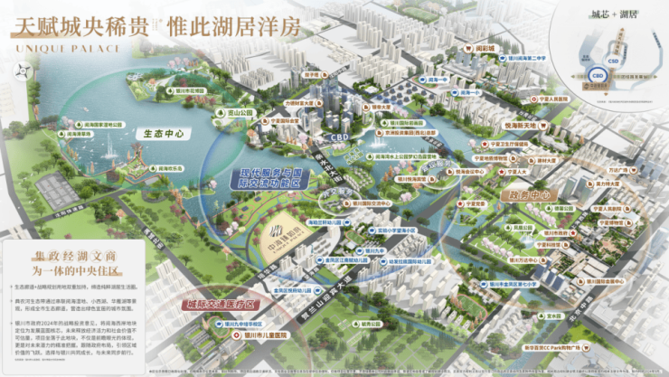 当城市发展进入"首府经济圈"时代,中海臻如府踞守的中央政务区、国际商务区与生态文化带交汇处,正缔造着银川前所未有的价值高地。政务中枢近在咫尺,金融动脉贯通,阅海湖国家级湿地滋养,阅彩城、悦海新天地等丰盛商业环伺——这里不仅是城市资源交汇的"黄金十字",更以五大中心能量场域,重塑塔尖人群对高端住区的价值想象。