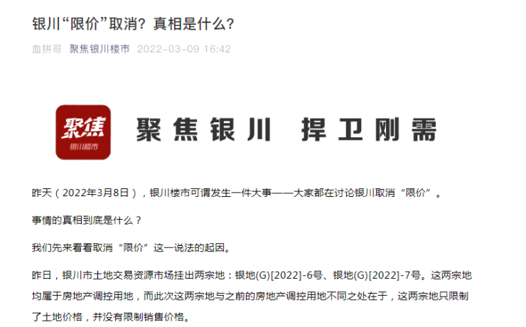 而“限定住宅销售均价”取消,对于银川市场来说,是一种政策的松动,推动楼市回暖。