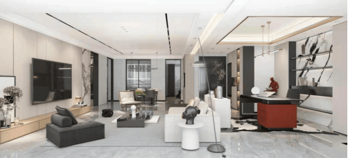 “LDKG+书房”一体化设计,决不让风景止步于阳台,而是融入生活,成为家庭温馨时刻的背景板。