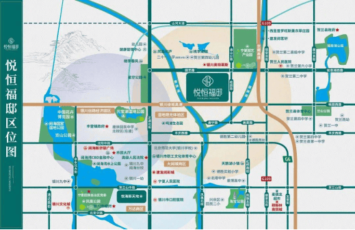 悦恒福邸位于园艺路与睦园路交会处,身居阅海北延伸区域与贺兰县发展交互板块,依托得天独厚的生态资源和水系资源,区位优势明显。