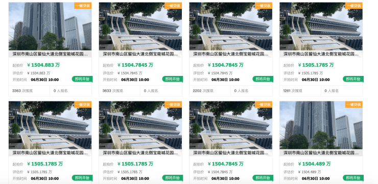 5月27日,阿里法拍发布10套宝能城花园房源拍卖信息,套均建筑面积约152平方米,起拍价约1504万元,折合单价约9.85万元/平方米,与周边二手房成交参考价相近。不过此次上线的房源仅有10套住宅,并非传说中的400多套,价格也比此前市场传言的11万-12万元/平方米单价低很多。