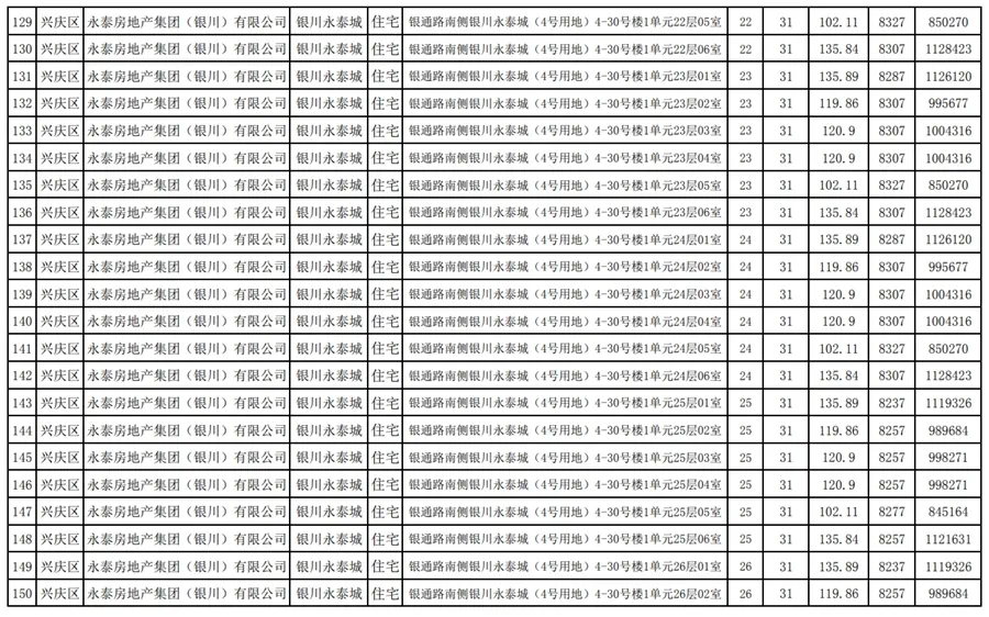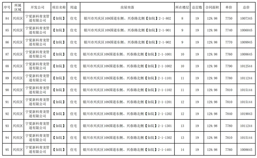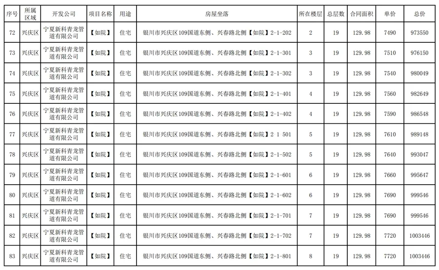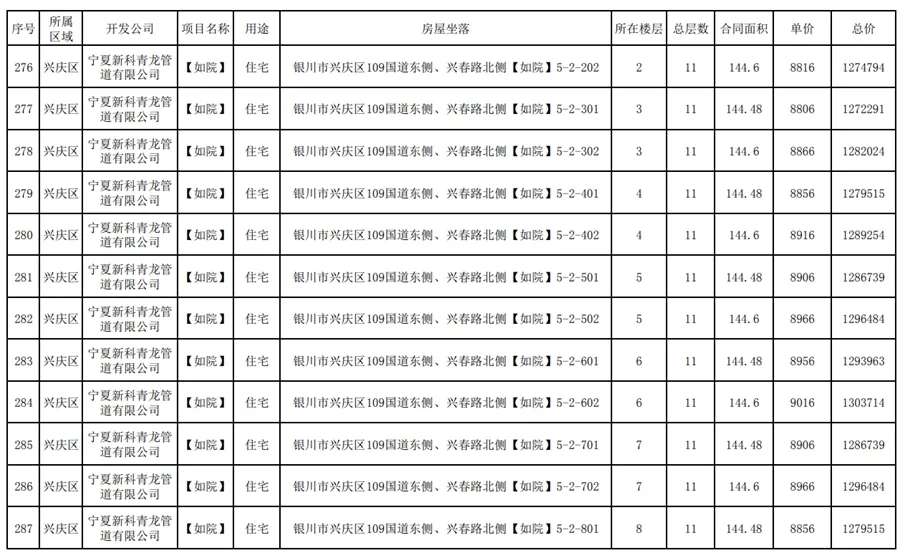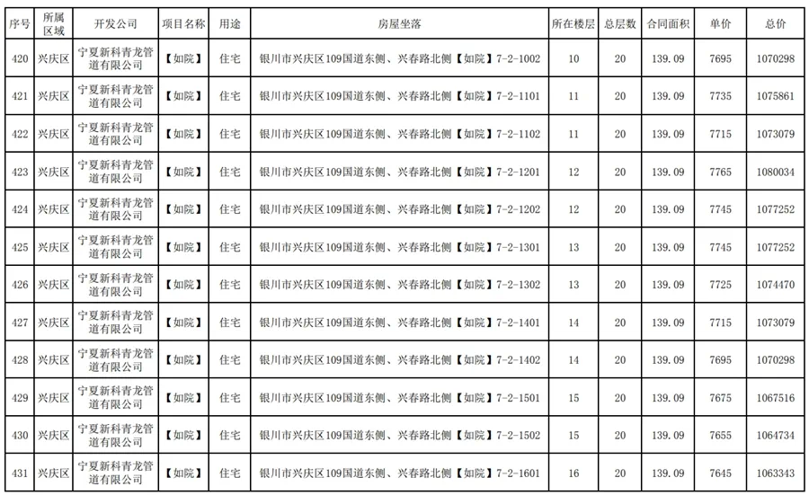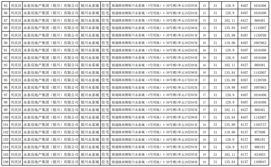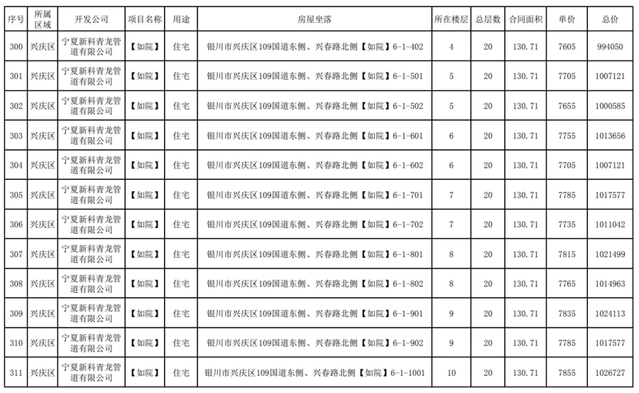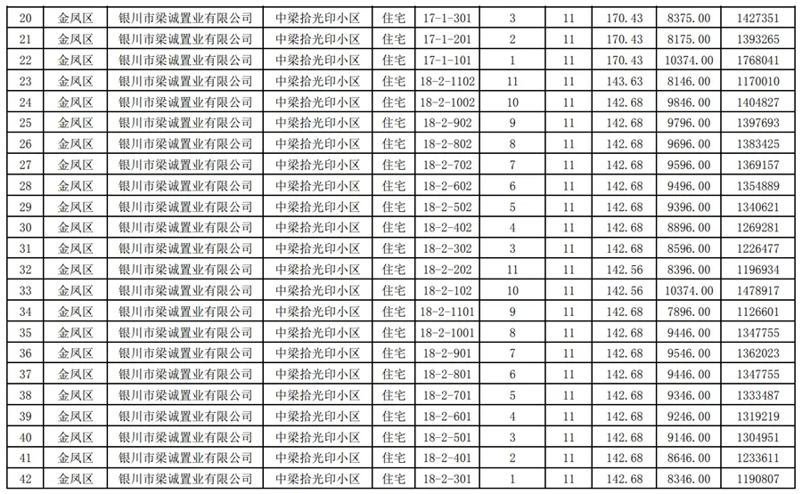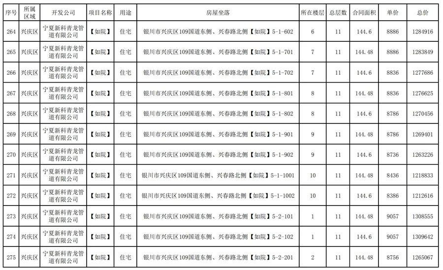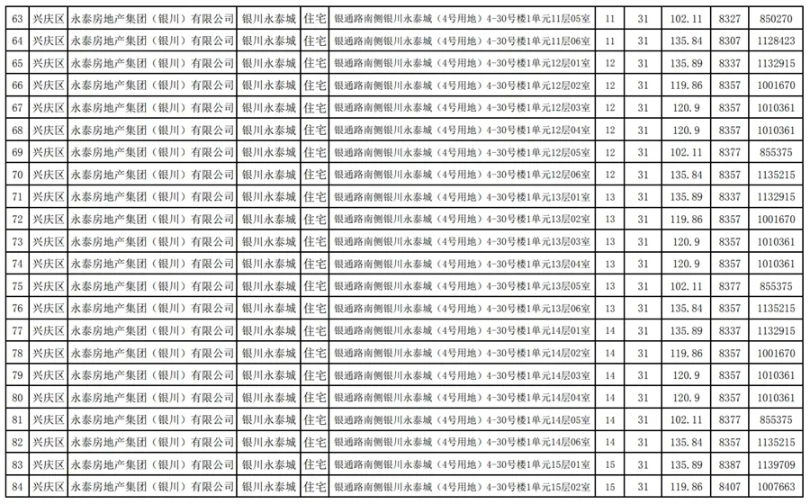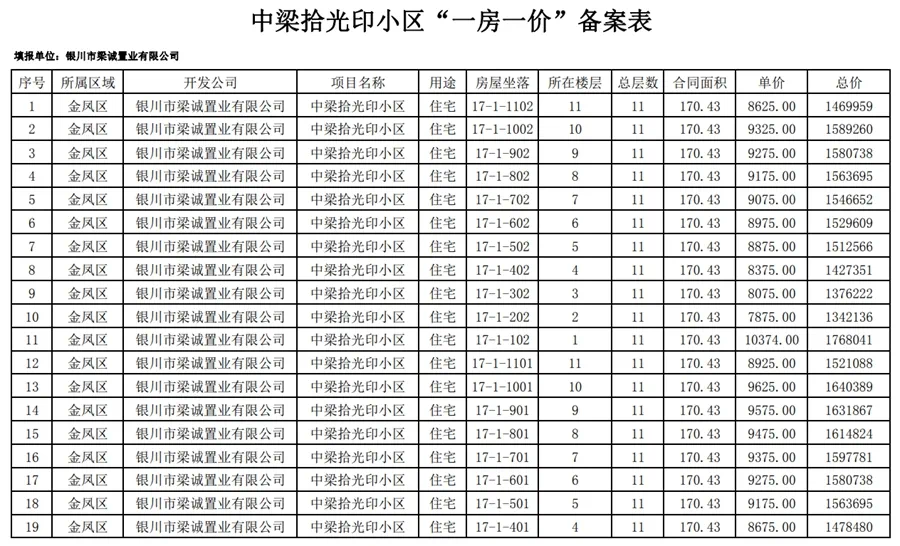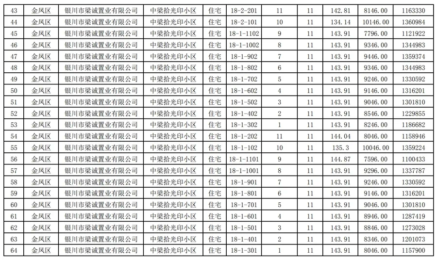 今日,银川住建局第37批一房一价公示,共3个项目,747套房源!其中:中梁拾光印小区项目公示64套住房,均价9021元/㎡。如院项目公示499套住房,均价7876元/㎡。银川永泰城项目公示184套住房,均价8229元/㎡。