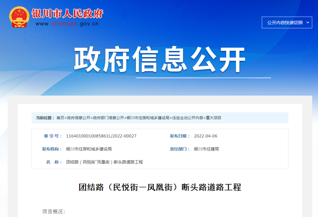 近日,银川市人民政府公布了团结路(民悦街-凤凰街)断头路道路工程信息,对于住在阅海经济区的朋友们来说,无疑是个好消息。
