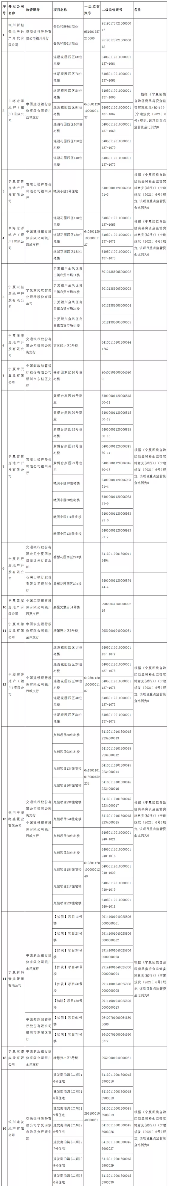 现将2021年11月01日至2021年12月13日银川市房地产开发企业办理的商品房预售资金监管账户信息予以公示。