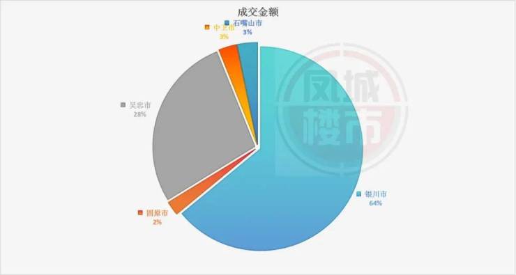 从成交金额来看:银川市占比64%,总计成交40亿,固原市占比最小,总计成交1.4亿;