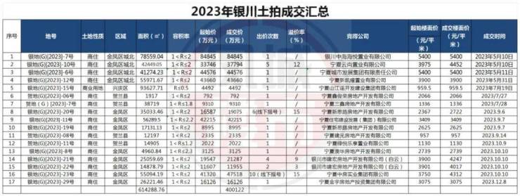 回顾2023年的宁夏土拍市场,我们可以看到市场逐渐回暖的趋势。尤其是在下半年,银川土拍规则限价取消,使得市场更加活跃。