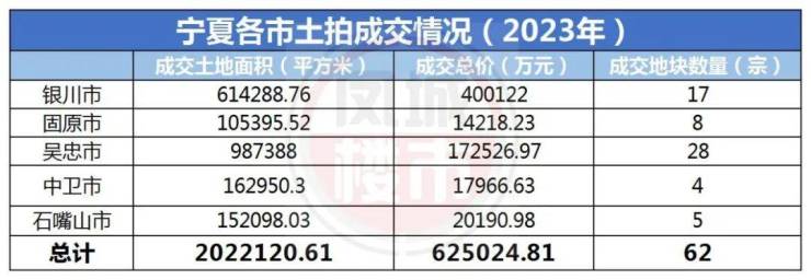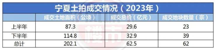 2023年宁夏土拍市场揽金62.5亿!成交62宗!