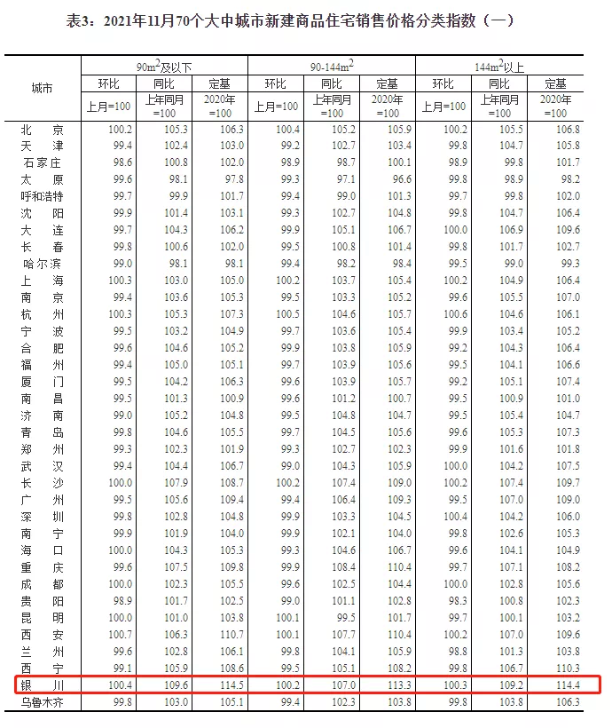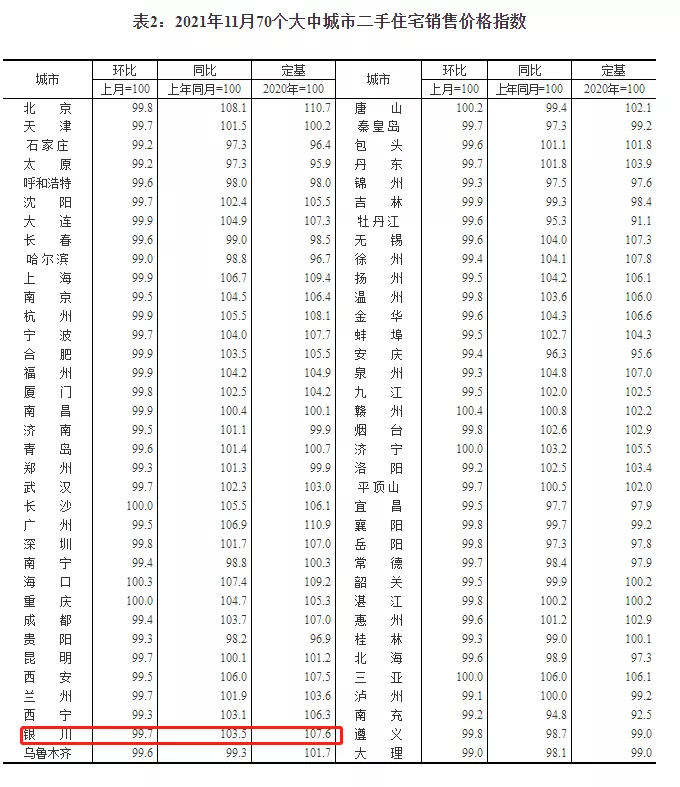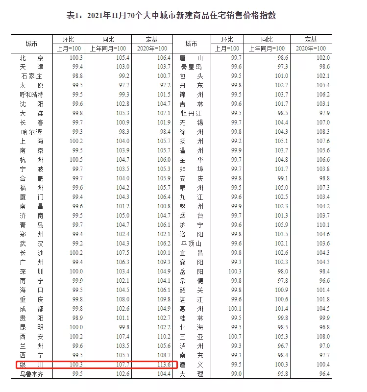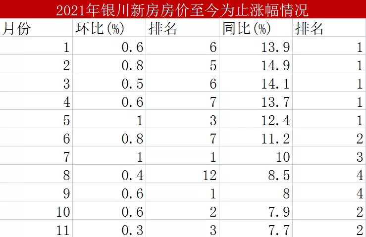 11月银川新房房价环比上涨0.3%,环比涨幅和北京,岳阳并列全国第三!同比涨幅7.7%,居全国第二!