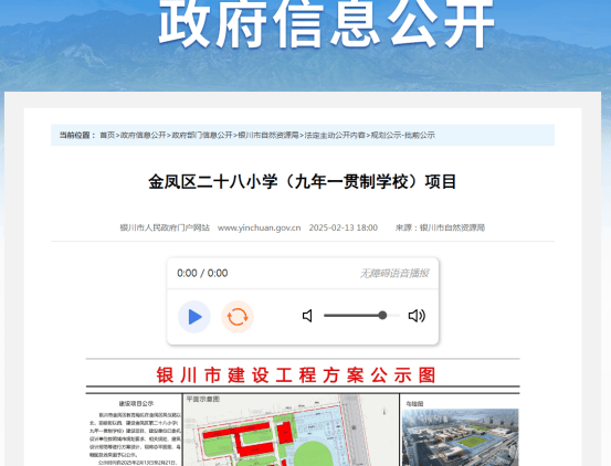 2月14日,银川政府规划网发布了金凤区二十八小学(九年一贯制学校)项目的规划公示。