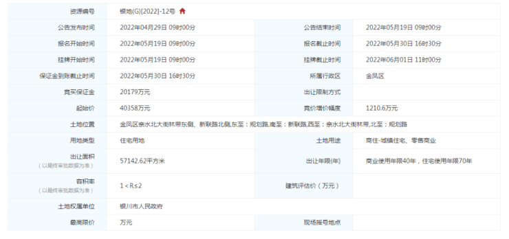自去年下半年以来,银川土拍市场频频遇冷,总出现流拍状况,近日6月1日要拍卖的两宗地块:商住用地银地(G)[2022]-12号和商业用地银地(G)[2022]-4号皆已迎来出价,银川土拍市场终于开始回温。