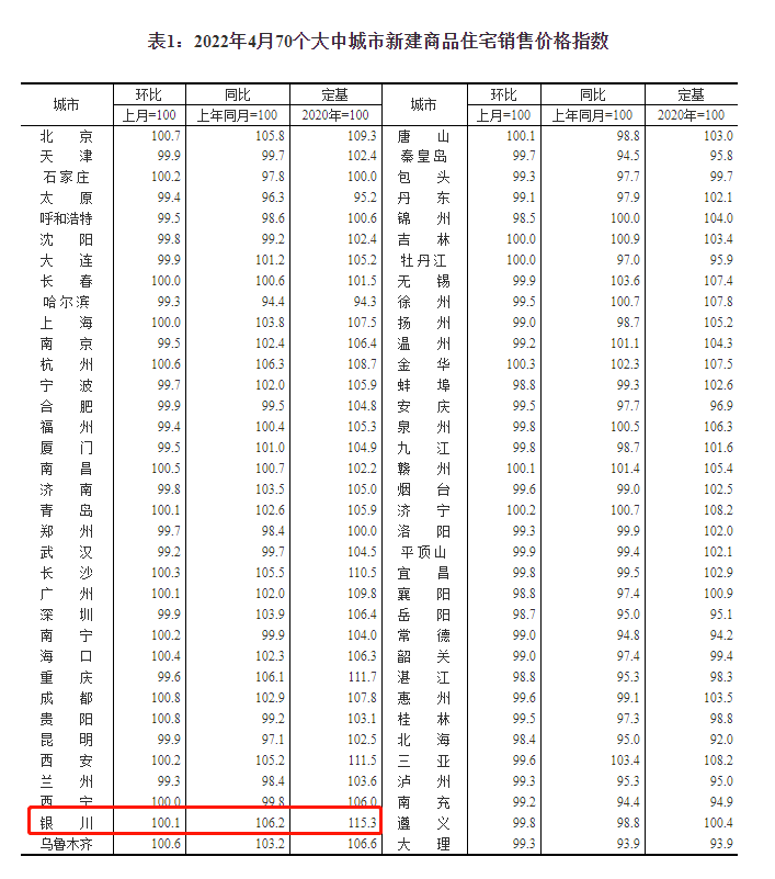 进入4月,银川降低首付比例,放开了限售政策,那么,4月份的70城房价如何?
