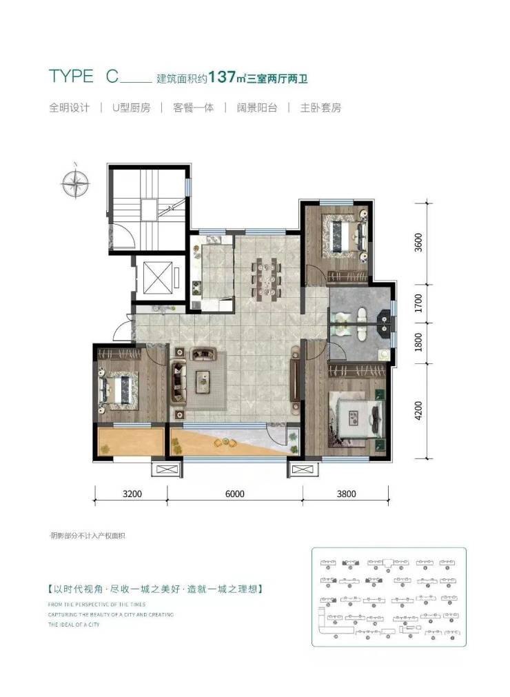 建面约137㎡打造三室两厅两卫,是中级改善客群选择最多的户型,区别于市面上纯改善的大面积,这款户型精巧实用,空间功能布局充分结合居住的舒适性,为改善客群提供更多样化的选择。