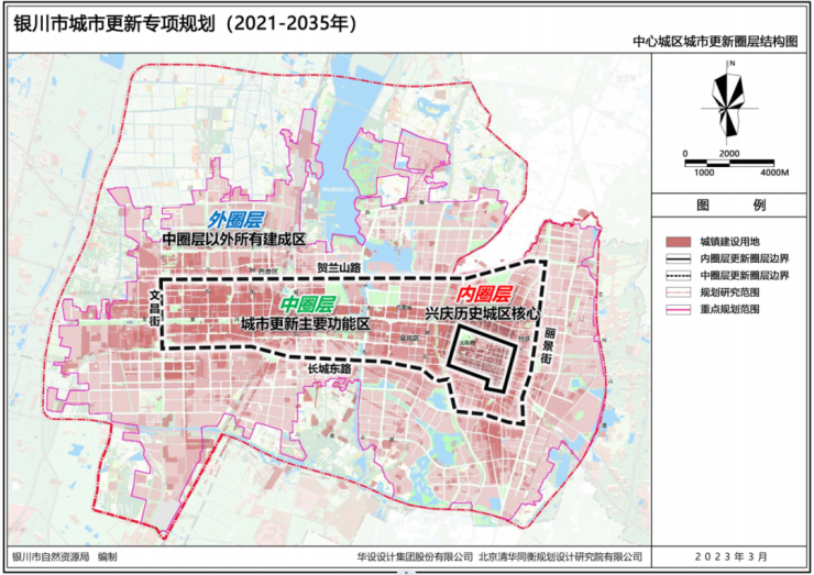 同时,作为银川市城市更新的顶层设计,《规划》承载了市级国土空间总体规划指引,明确了“内-中-外” 三级更新圈层结构。