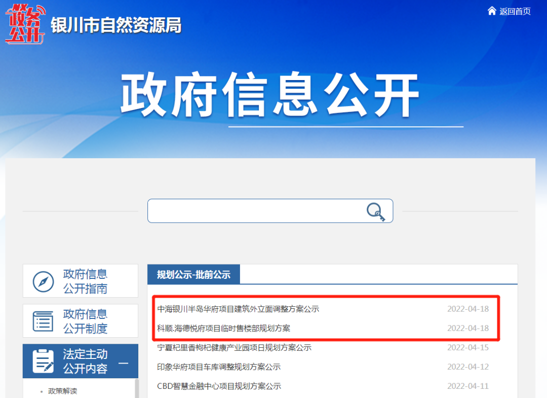 刚刚,银川市自然资源局较新公示了“中海银川半岛华府项目建筑外立面调整方案”和“科顺·海德悦府项目临时售楼部规划方案”。
