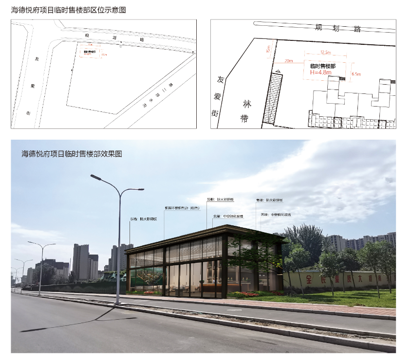 海德悦府项目临时售楼部位于友爱街以东,规划路以南。