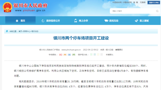 银川市中山公园地下停车场项目和民族街百姓购物城南侧停车场已经开工建设,预计年内新增车位超过300个。同时,银川城投公司持续扩展停车空间,利用公共区域地下空间、立体停车空间,目前已实现泊位管理4万余个,有效缓解停车难问题。