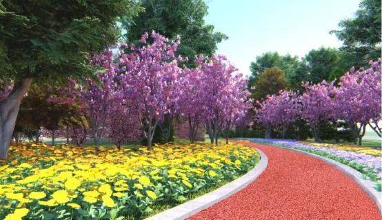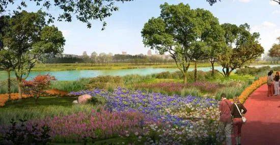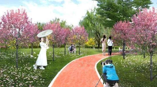 生态运动区:建设内容主要有健身步道、广场、童趣乐园、沙滩、多功能运动场、足球 场、卫生间等。植物选择主要有国槐、 白蜡、长枝榆、垂柳、红叶碧桃、连翘、鞑靼忍冬、鸢尾、马鞭草、假龙头、野花组合等。