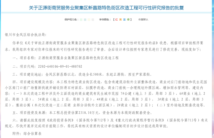 速戳!银川金凤区投资2310.10万元新建一条特色商业街