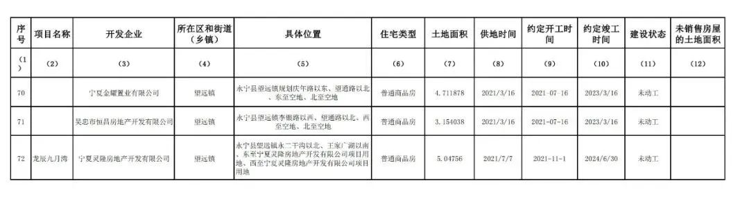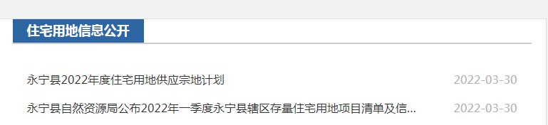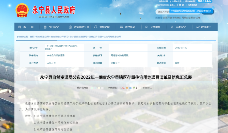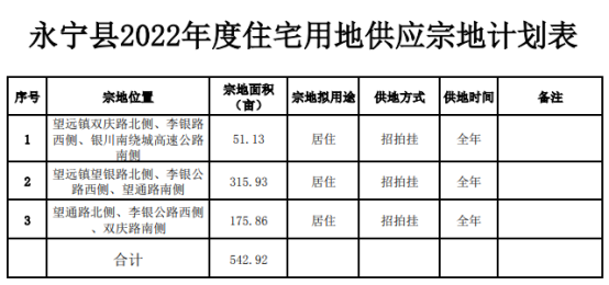 与此同时,永宁县人民政府也公示了2022年度住宅供地宗地计划和排名前列季度永宁县辖区存量住宅用地项目清单及信息汇总表。
