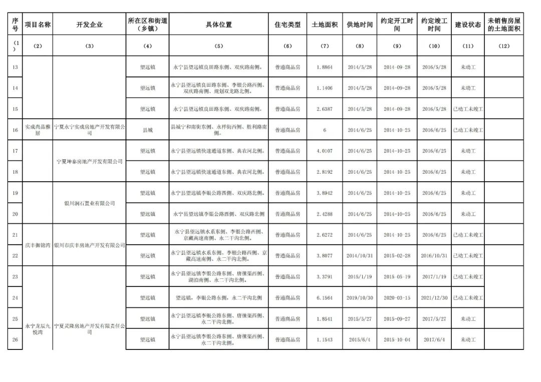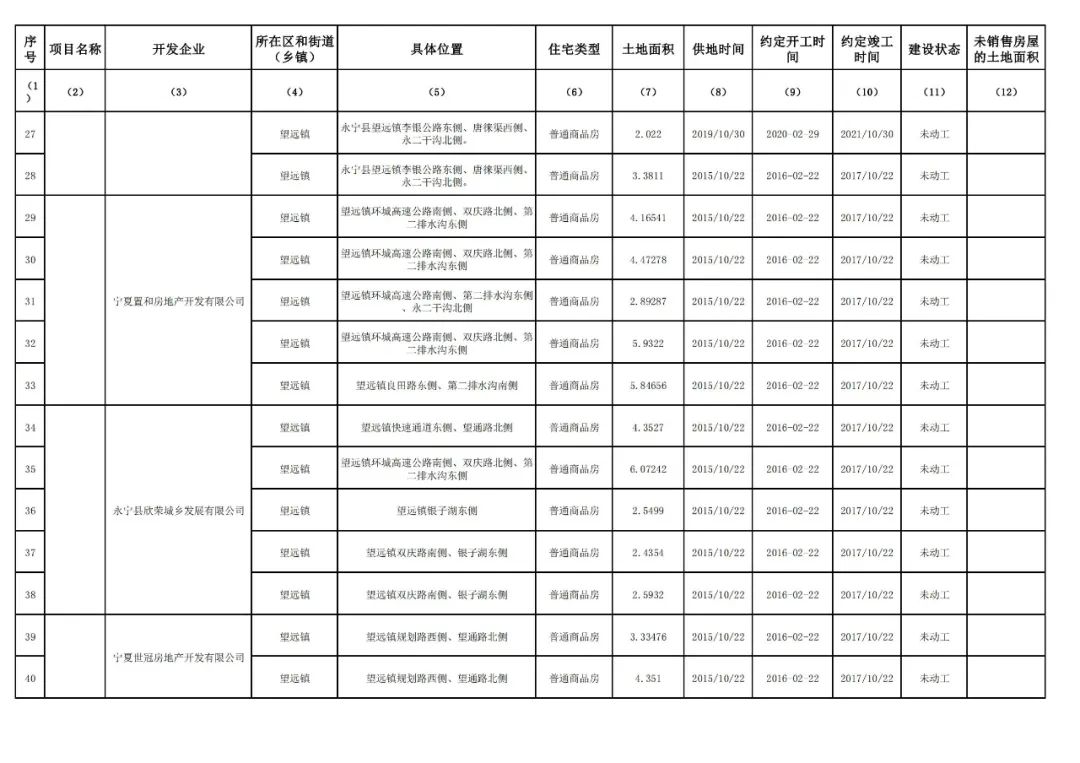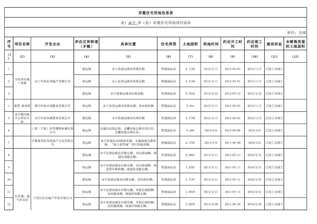 一、排名前列季度永宁县辖区存量住宅用地项目清单及信息汇总表