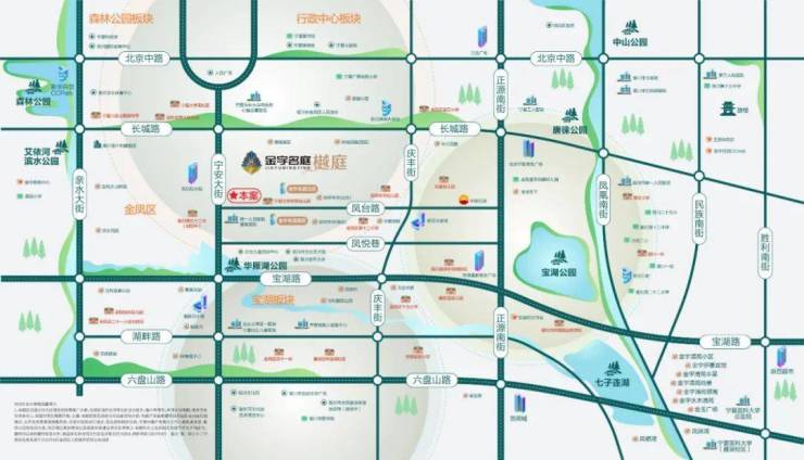 项目择址宁安街和凤台路交会处,以沉淀多年的筑城修为,于银川经政核芯C位筑造区域人居标杆项目——金宇名庭·樾庭。