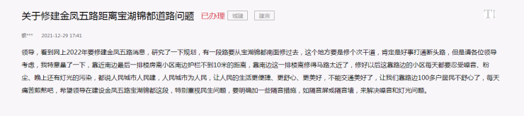 随后,人民网留言板就有银川城南居民不断反映,鲁银城市公元、湖映康晨、宝湖福邸、宝湖锦都等多个居民住宅小区,数万市民每天都面临着早晚高峰,单向车流汇集宝湖路,引起的严重拥堵等问题。