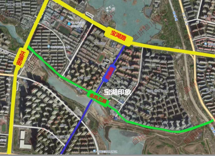 从图中可以看到金凤五路是一条东西向通道,不仅大大减轻宝湖路、六盘山路的交通压力。还加强了区域间的优势互补,为银川城南经济的进一步发展奠定坚实的基础。