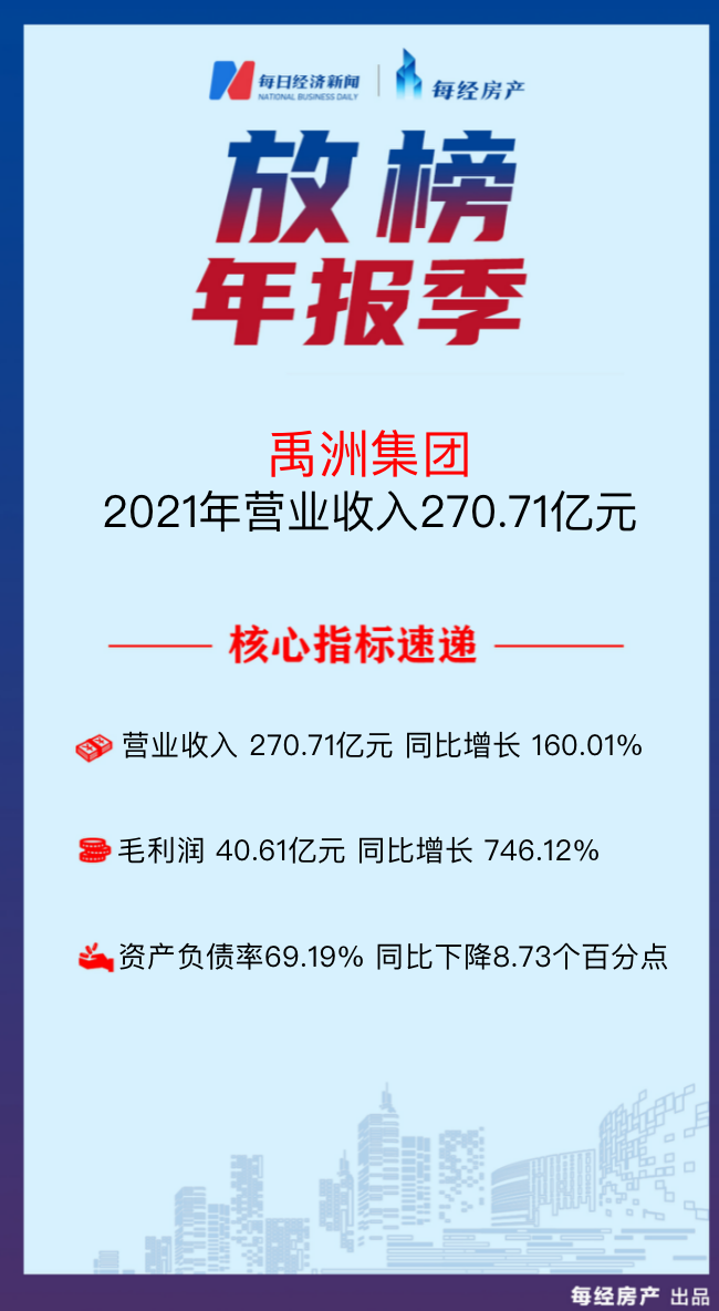 禹洲集团:2021年营收同比增长160%至270.71亿元