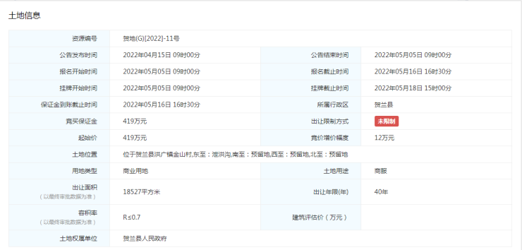 土地位置:位于贺兰县洪广镇金山村,东至:预留地,南至:预留地,西至:预留地,北至:预留地