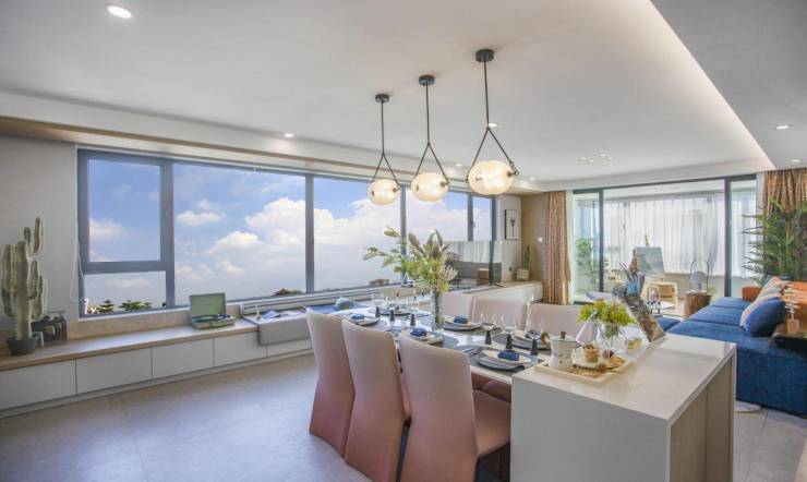 约60平米的超大会客厅可容纳20人聚餐,特别设计的「XSPACE」空间灵活百变,四室两厅两卫的设计和市面上极度稀缺的270°转角采光窗,让您在家中就能享受到如同置身大自然般的舒适与惬意
