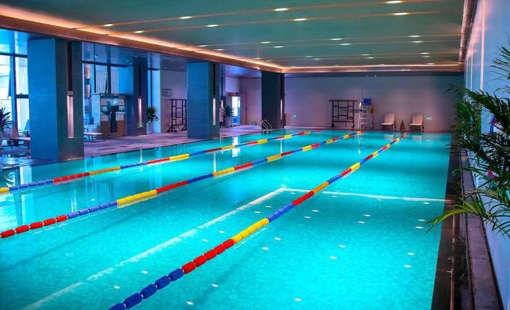 会所负一层还有国际半标游泳池,标准高于凯宾斯基酒店的国际半标游泳池,与JW万豪酒店泳池一样,并且采用无边满溢方式进行水循环,整体美观度提升的同时,不断的进行过滤,保证水质清澈,让您有更好的游泳体验