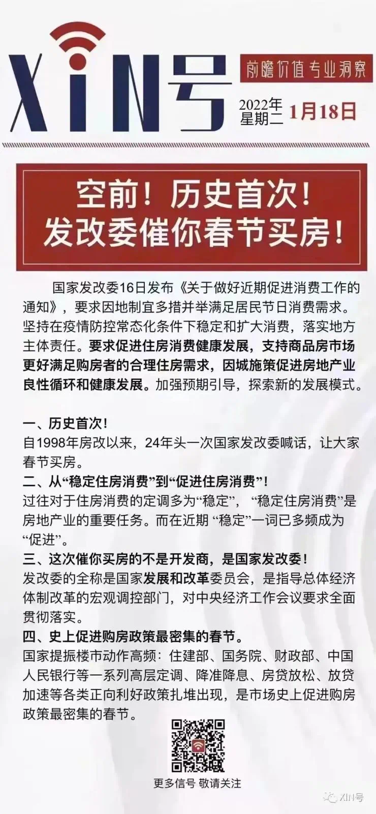 这也是历史以来,头一次国家发改委喊话,让大家春节买房。