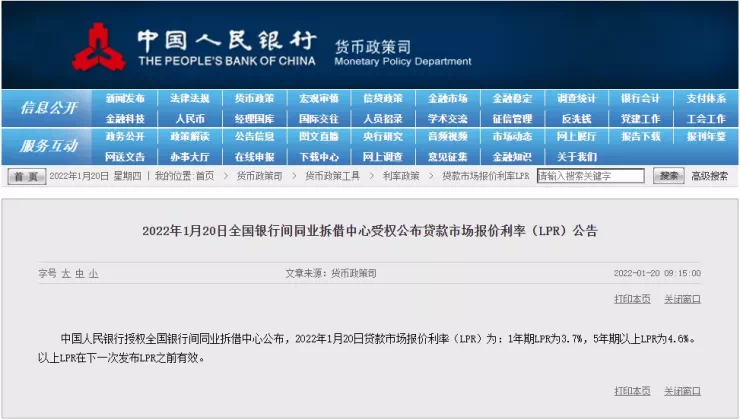 不仅如此,2022年1月20日贷款市场报价利率(LPR)为:1年期LPR为3.7%,5年期以上LPR为4.6%。