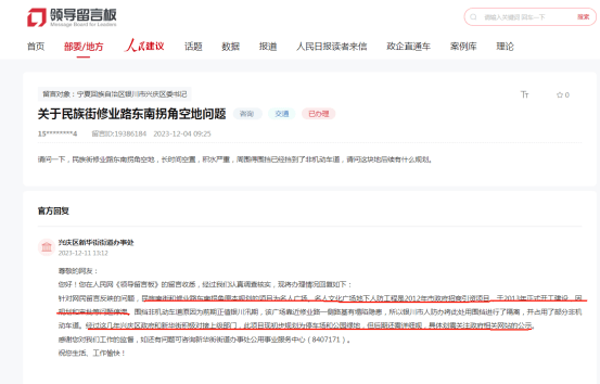 近日,有网友咨询:民族街修业路东南拐角空地,长时间空置,积水严重,周围得围挡已经挡到了非机动车道,请问这块地后续有什么规划。