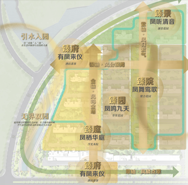 园林设计上,中海臻如府将庄子的哲学思想与银川凤凰城的传说巧妙融合,通过“引湖入园”的手法,在现代园林主义的指引下,打造“一带一环·三凤轴五臻境”的美学园林,实现自然之美与现代生活方式的完美结合。