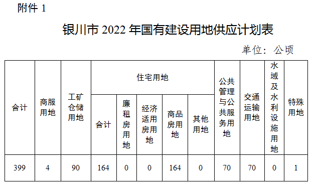 银川市2022年国有建设用地计划供应总量控制在399公顷。