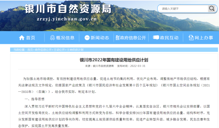 3月30日,永宁、贺兰两县今年的供地计划相继“浮出水面”,3月31日,银川市2022年土地出让计划也随之曝光。