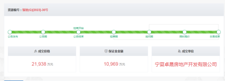 银地(G)[2023]-30号地块被宁夏卓晟房地产开发有限公司,以总价21938万元拿下,楼面价为3125元/㎡。