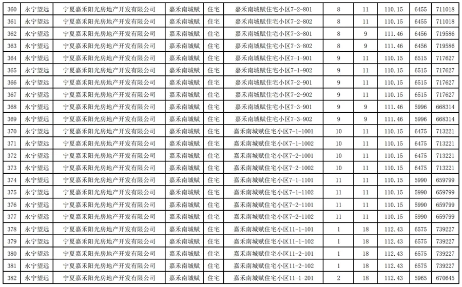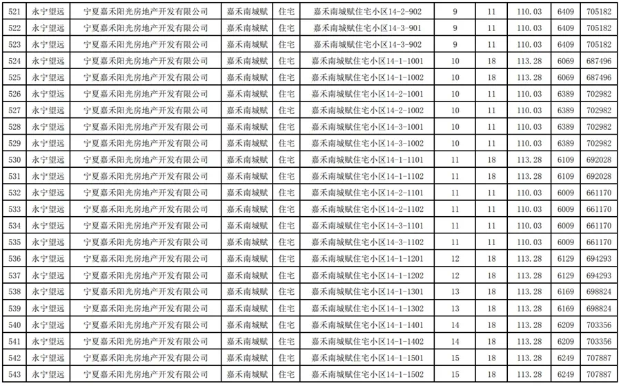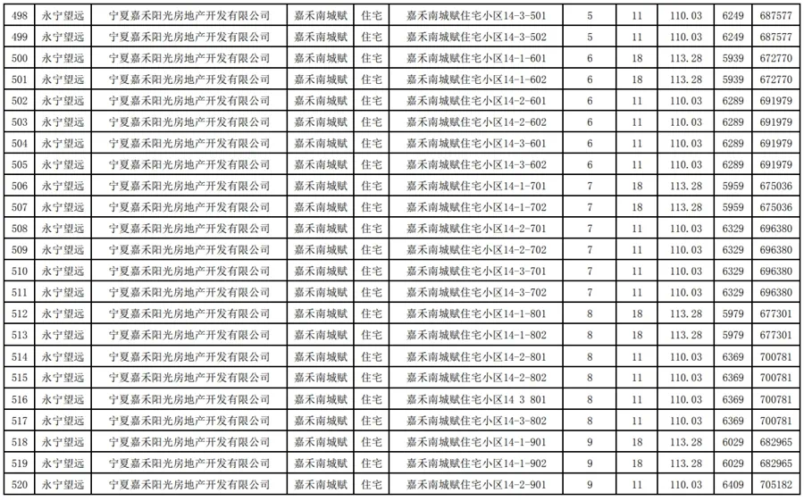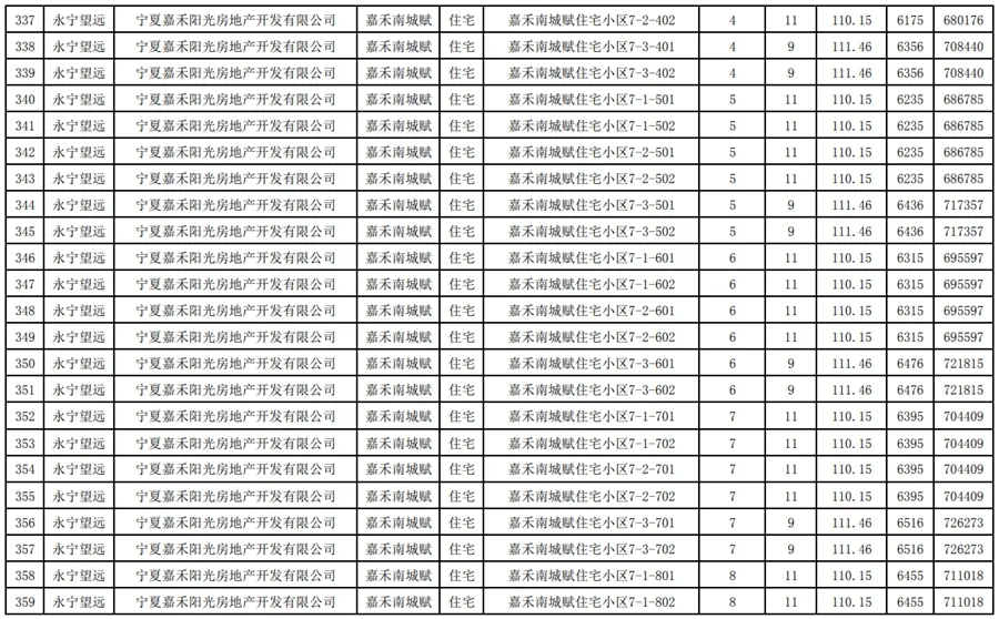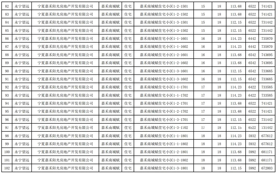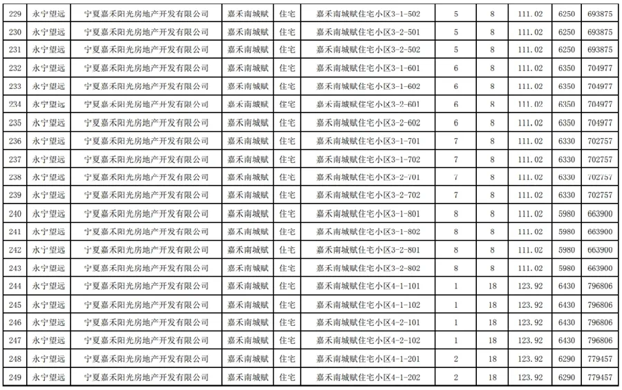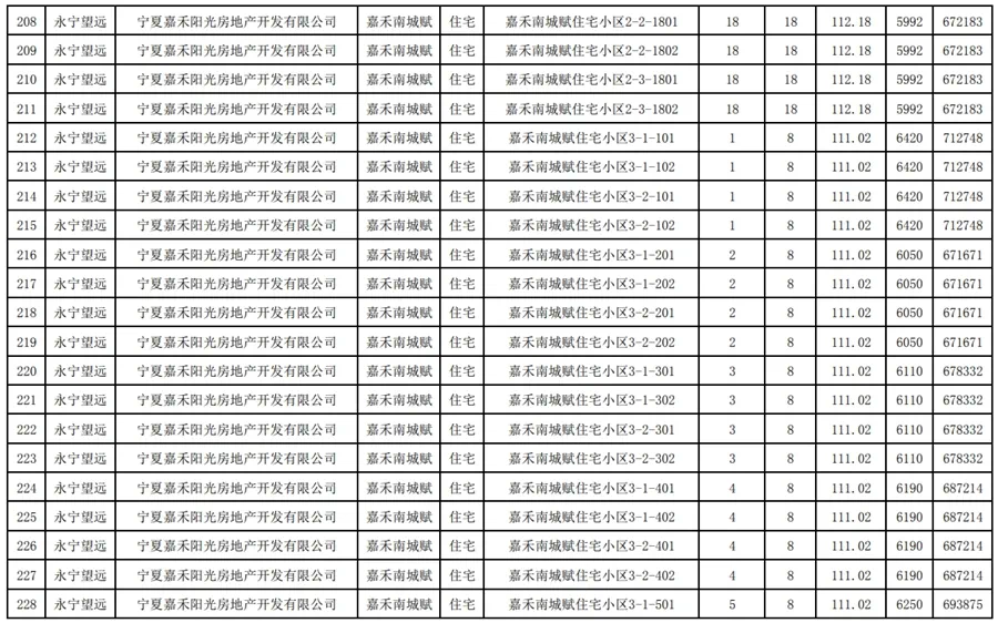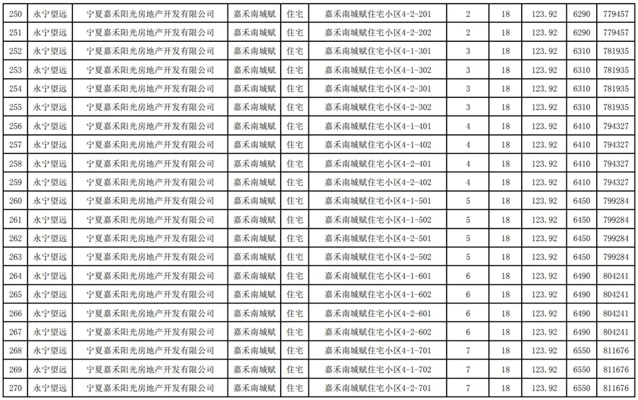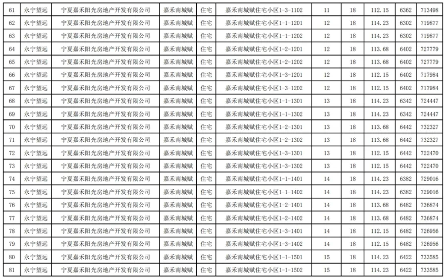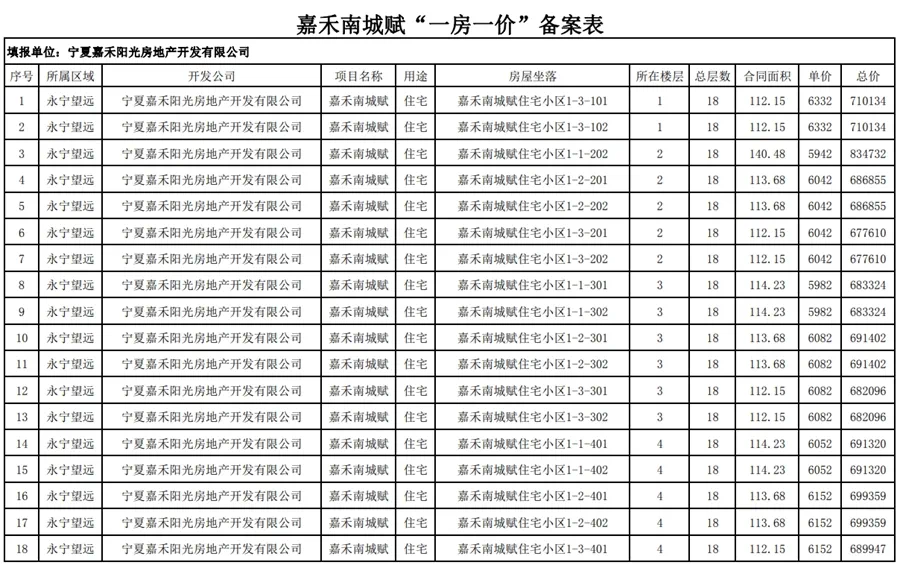 1月14日宝湖福邸书乡里和阅海锦园西区两个项目价格公示,引起整个市场的关注,临近年关,银川市住房和城乡建设局又公示了2022年第2批商品住房价格。 2022年第2批商品住房一房一价公示1个项目,即嘉禾南城赋,共549套房源,均价6280元/㎡。 具体详情如下: