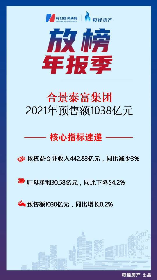 合景泰富集团:2021年预售额同比增长0.2%至1038亿元