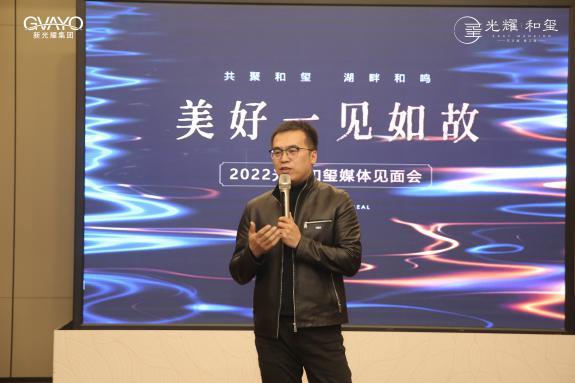 2022年2月25日,“美好一见如故”光耀和玺媒体见面会盛大举行。新光耀集团总经理助理、营销条线负责人——杨九洲发表致辞,向大家讲述了光耀集团的品牌历史及择址城南区域的未来规划。