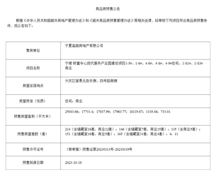 宁港·财富中心现代服务产业园建设项目1-5#、1-6#、4-6#、4-8#、4-9#住宅、1-S1#、1-S3#商业商品房预售公告