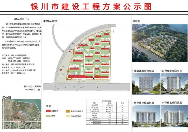银川中海海悦置业有限公司拟在培华路北侧、景观路林带东侧建设中海臻如府项目,建设单位已委托设计单位按照城市规划要求、相关规定、建筑设计规范等进行方案设计,现将总平面图、鸟瞰图及效果图予以公示。
