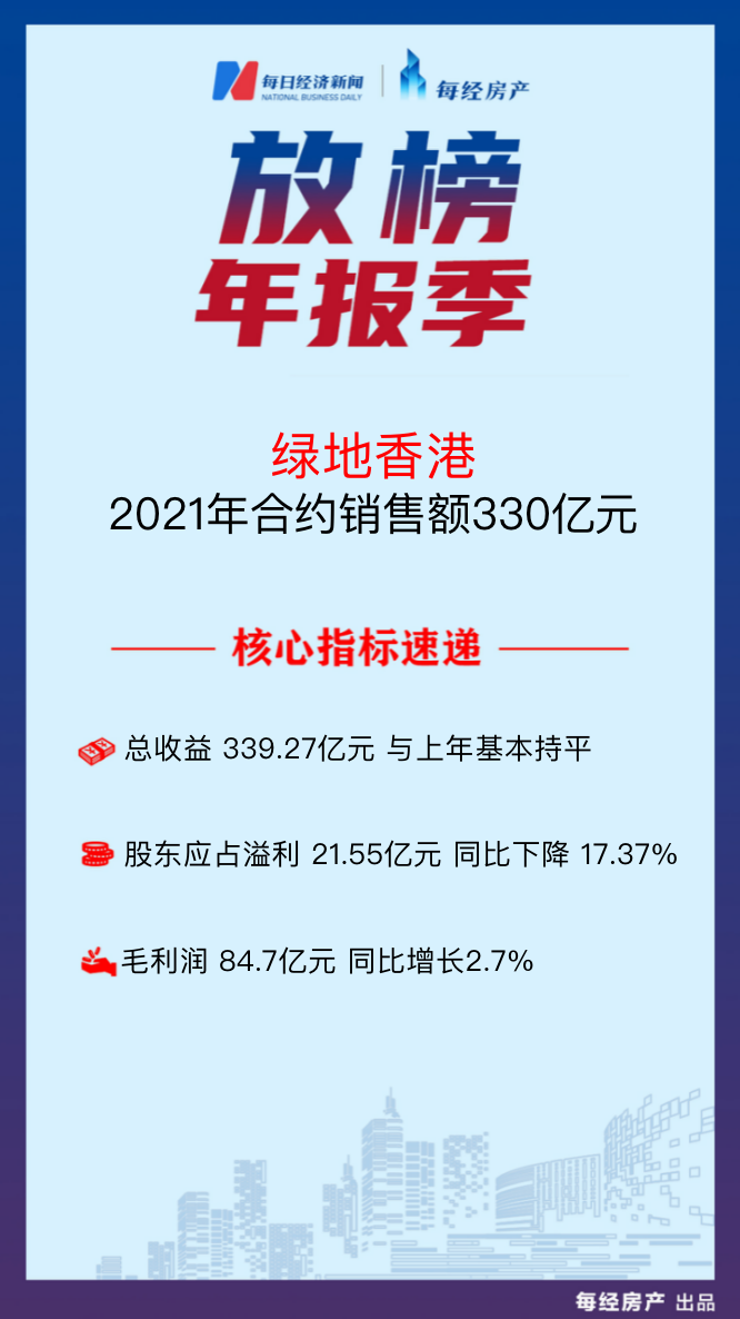 房产·年报速读| 绿地香港:2021年销售额330亿元