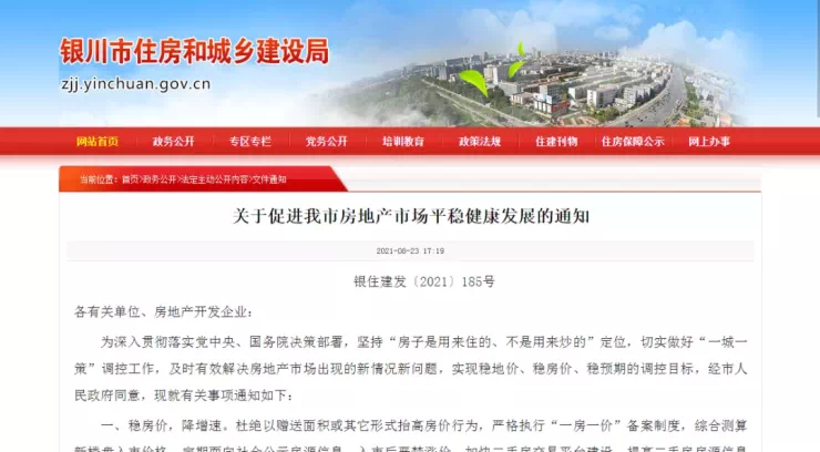 8月23日,银川市住房和城乡建设局发布了“新银八条”政策。