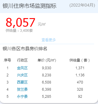 如上图所示,就4月房价来说,西夏区为银川重点发展三区的“价格洼地”,性价比真的无可比拟。
